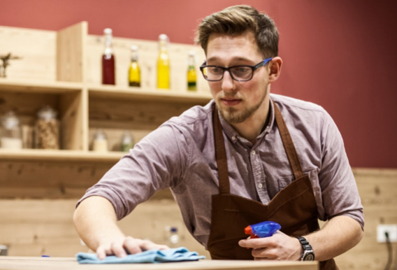 A kitchen steward maintains an establishment's kitchen and surrounding areas, keeping them clean and sanitary. Your duties include creating and maintaining a cleaning schedule for the kitchen, cleaning the stoves, ovens, pots, pans, grills and refrigerators and washing dishes, glasses, and cutlery.